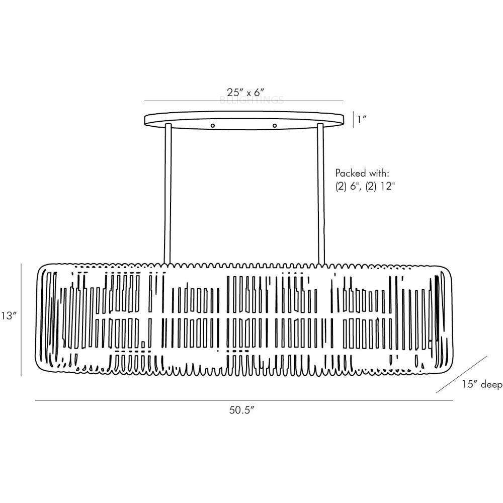 - Chandelier Body: 13"H, 15"D, 50.5"W
