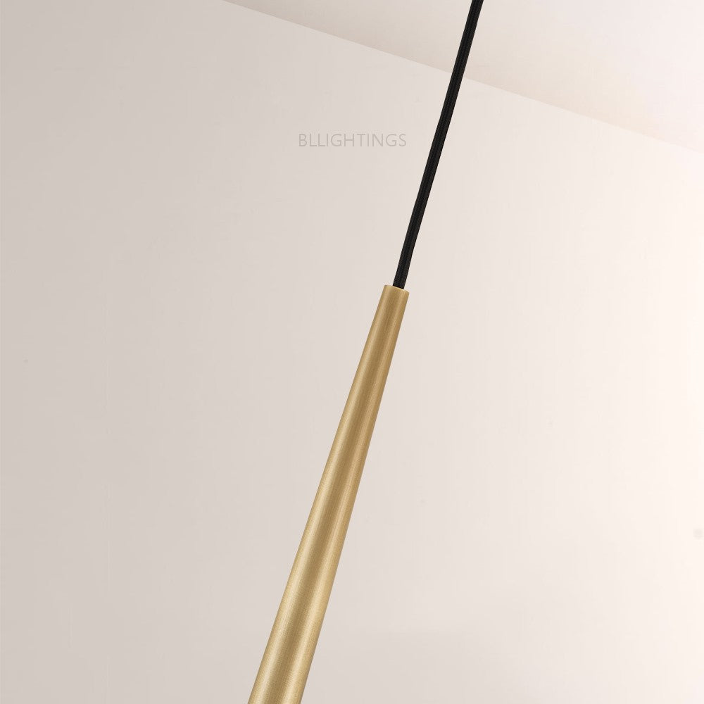 The main feature of the collection is a cluster of solid brass in the form of a suspension on a thin black cord. Recessed LEDs at the top of the faceted glass provide a warm light.