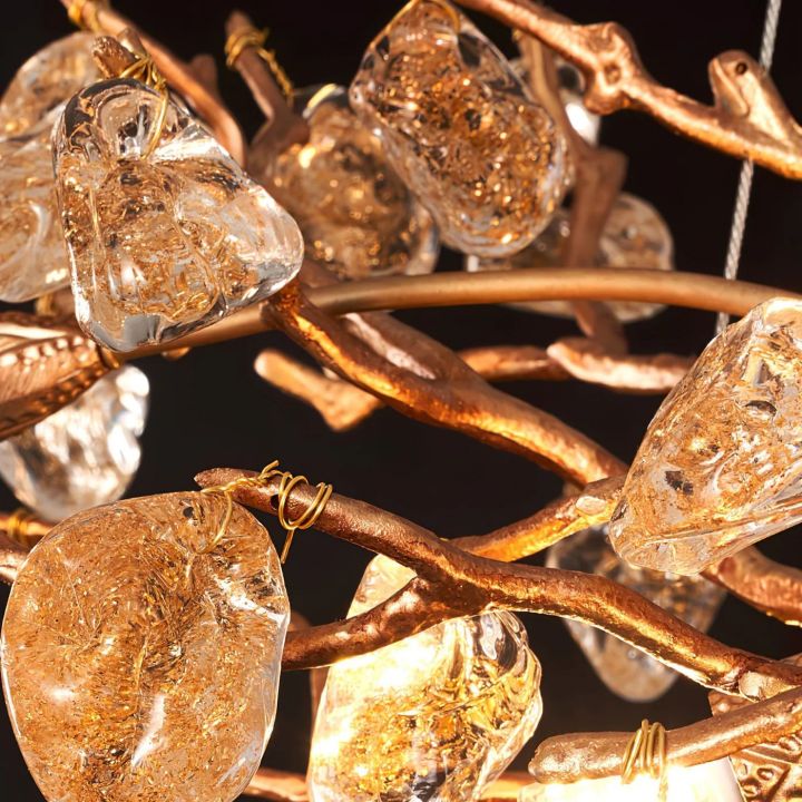 This Stone Crystal Brass Dining Room Chandelier is guaranteed to give your space a stunning, luxurious look. Expertly crafted using a genuine brass branch base, amber colored stone crystals, and a brilliant finish. Enjoy the timeless beauty of this chandelier all year round! |