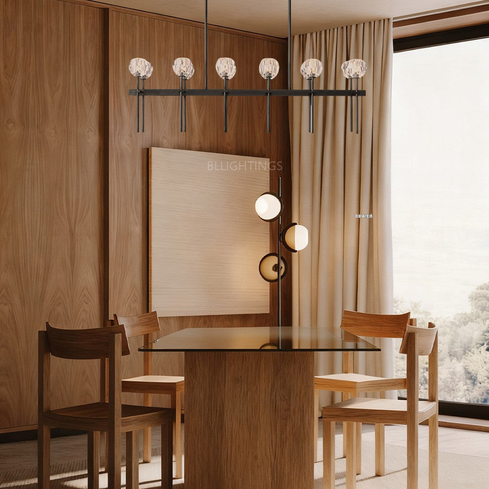 The collection crafted of solid brass and crystal glass, for luxe materials and superior craftsmanship, each finely faceted sphere is ground and polished by hand to reflect and refract the light.