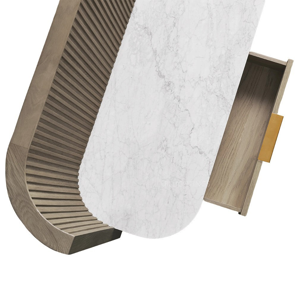 • Pieces finished in Honey are constructed from white oak wood with reeding detailing made from oak veneers.