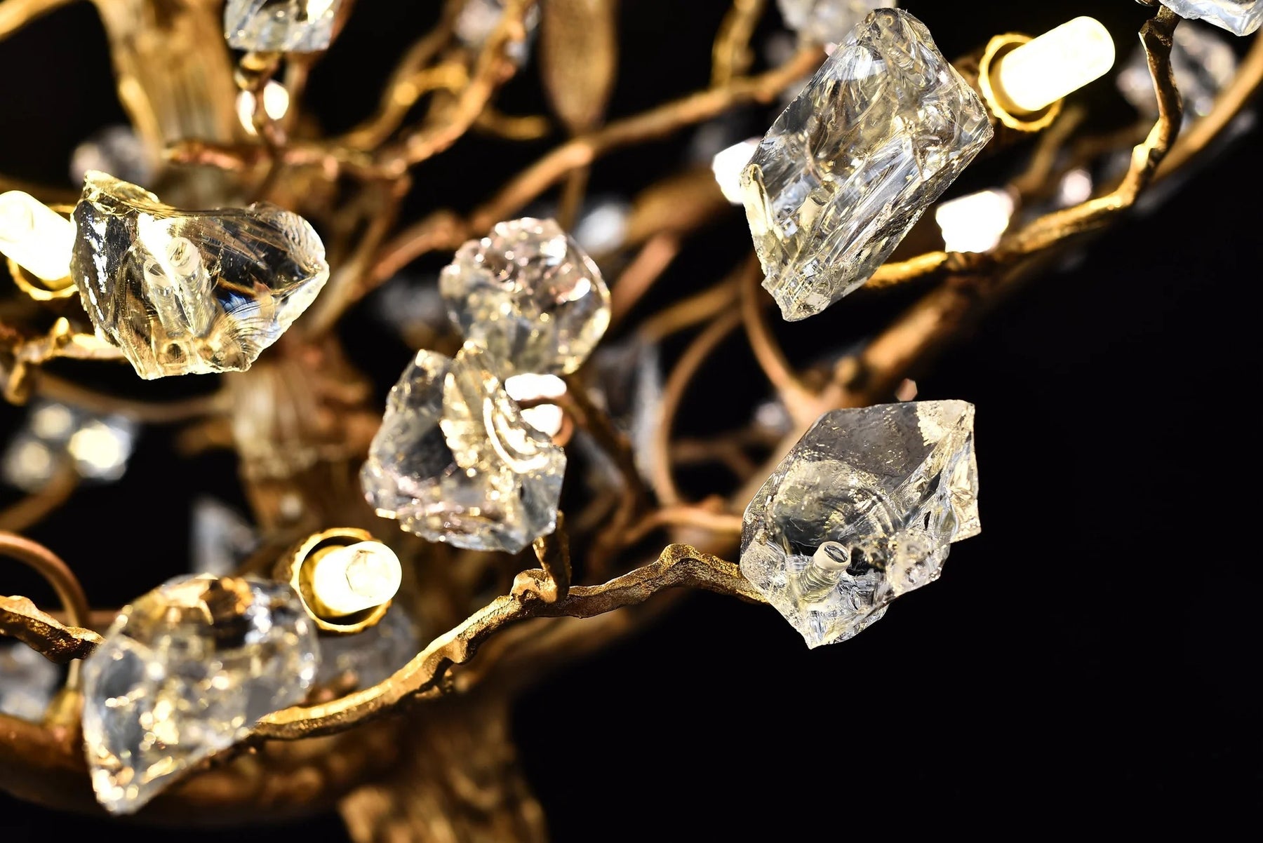 With a truly unique Art Deco design, this  chandelier is a show stopper. All-copper branch-shaped lamp body, simulated tree trunk, pure hand-made glass stone. Hang this luxury chandelier in any space in your home including bedrooms, living rooms, dining rooms, offices, and more.