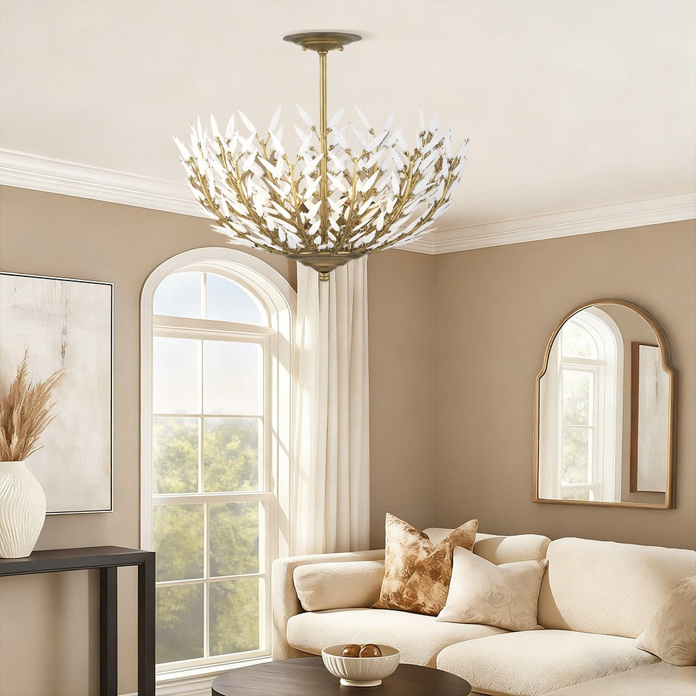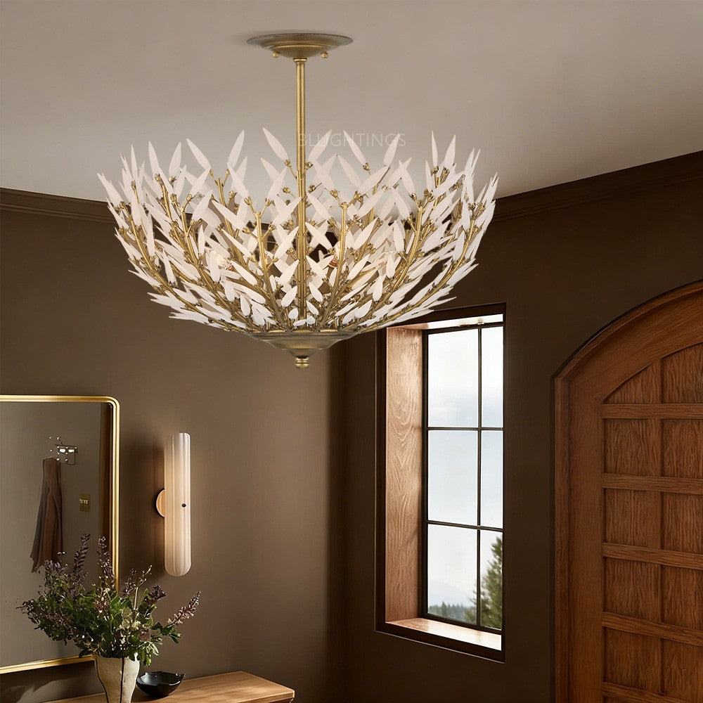 • Crafted from brass-finished iron and white glass by our artisan partners in the Philippines.
