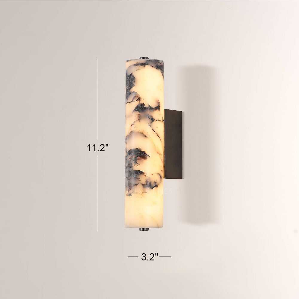 The Murray Cylindrical Marble Wall Sconce features a full marble-effect glass cylinder paired with a sleek matte metal mount. Its vertical silhouette casts warm, ambient light—ideal for adding understated luxury to high-end American bathrooms, bedroom headboards, or hallways.