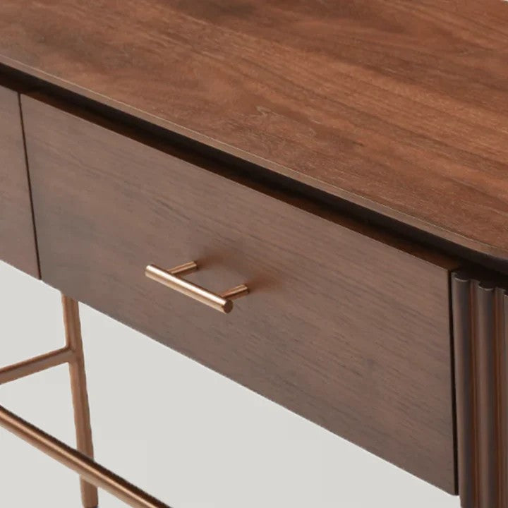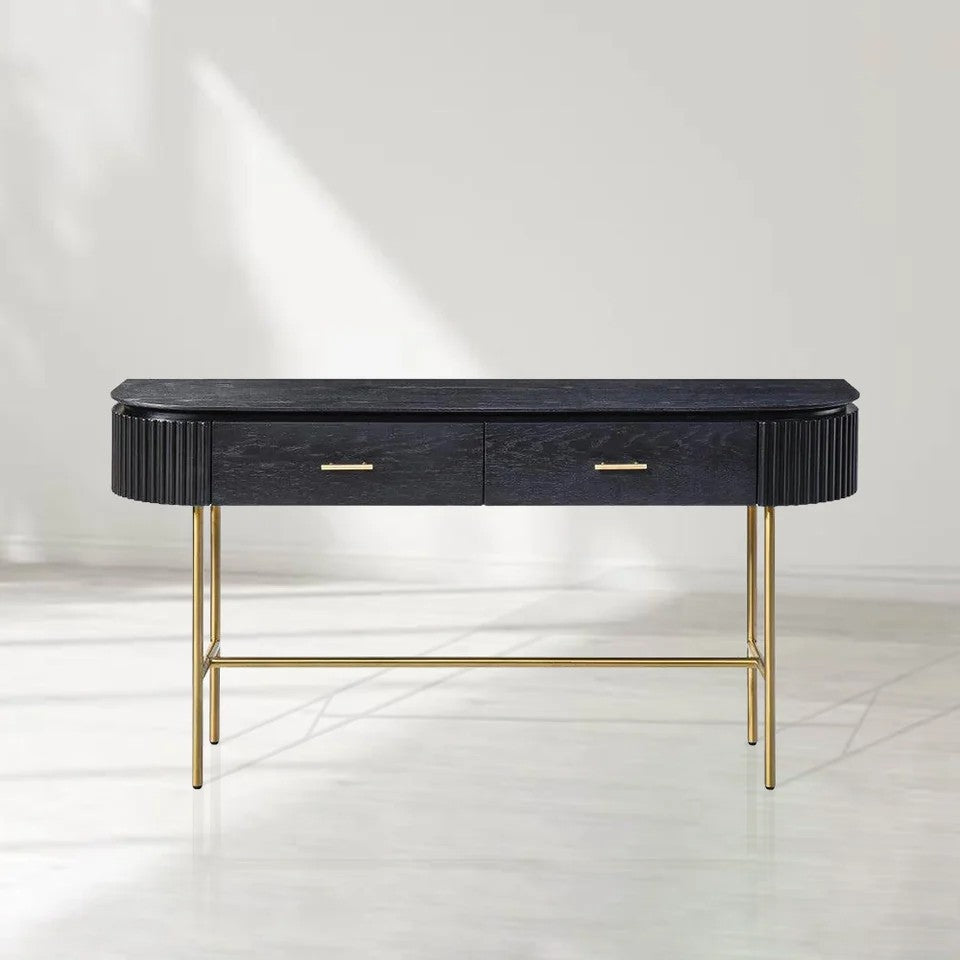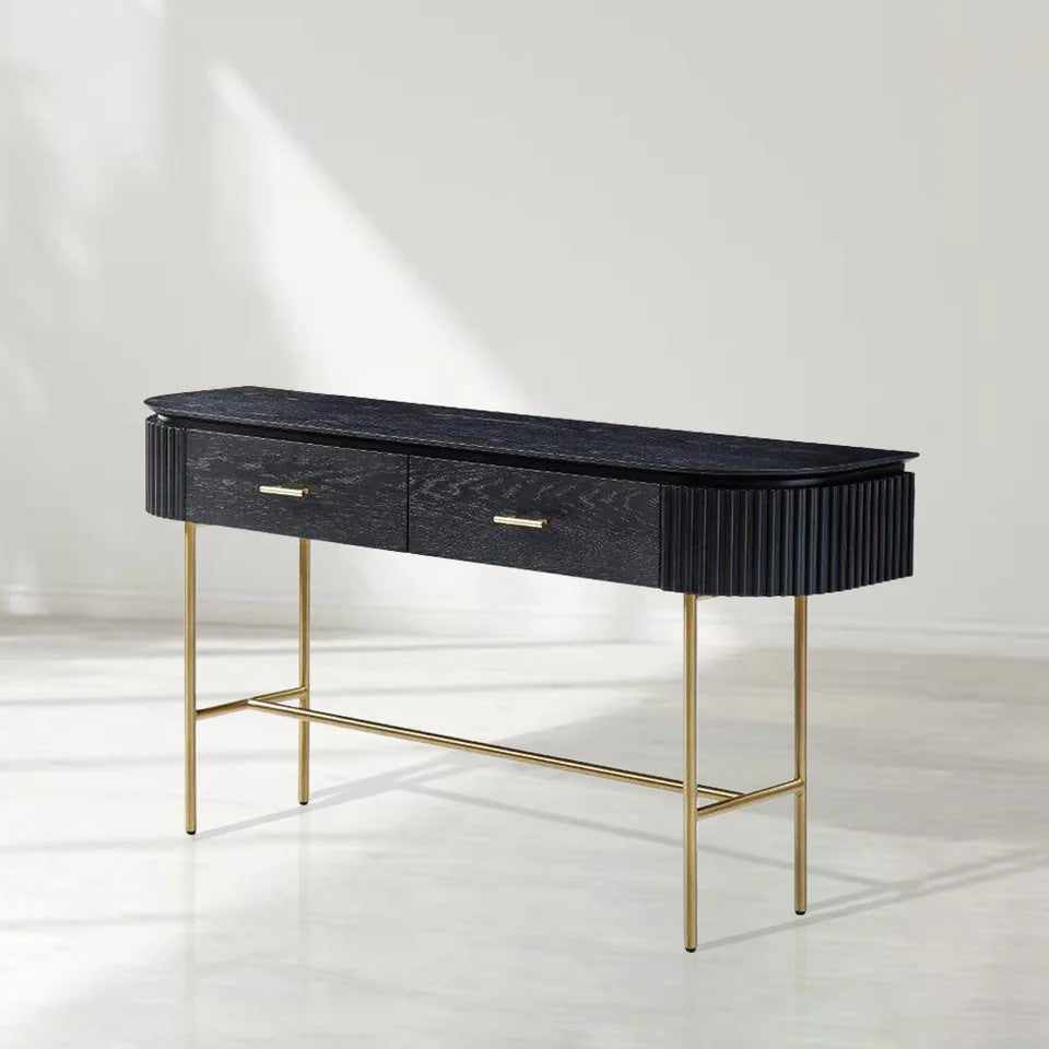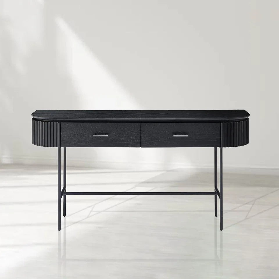 • A perfect fusion of style and functionality, the Lantine Console is a sophisticated addition to any interior. The ribbed end detailing introduces texture and depth, while the walnut veneer finish exudes warmth and timeless elegance.