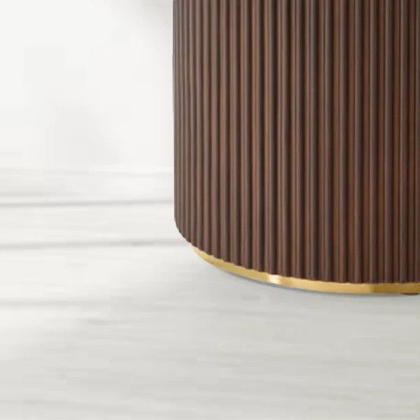 • Meet the Nantie 150 Dining Table, where timeless elegance meets functionality. With its graceful curves and ribbed base, this dining table is designed to bring warmth and sophistication to your home. The rich walnut finish enhances its luxurious appeal, while brass detailing adds a refined touch.