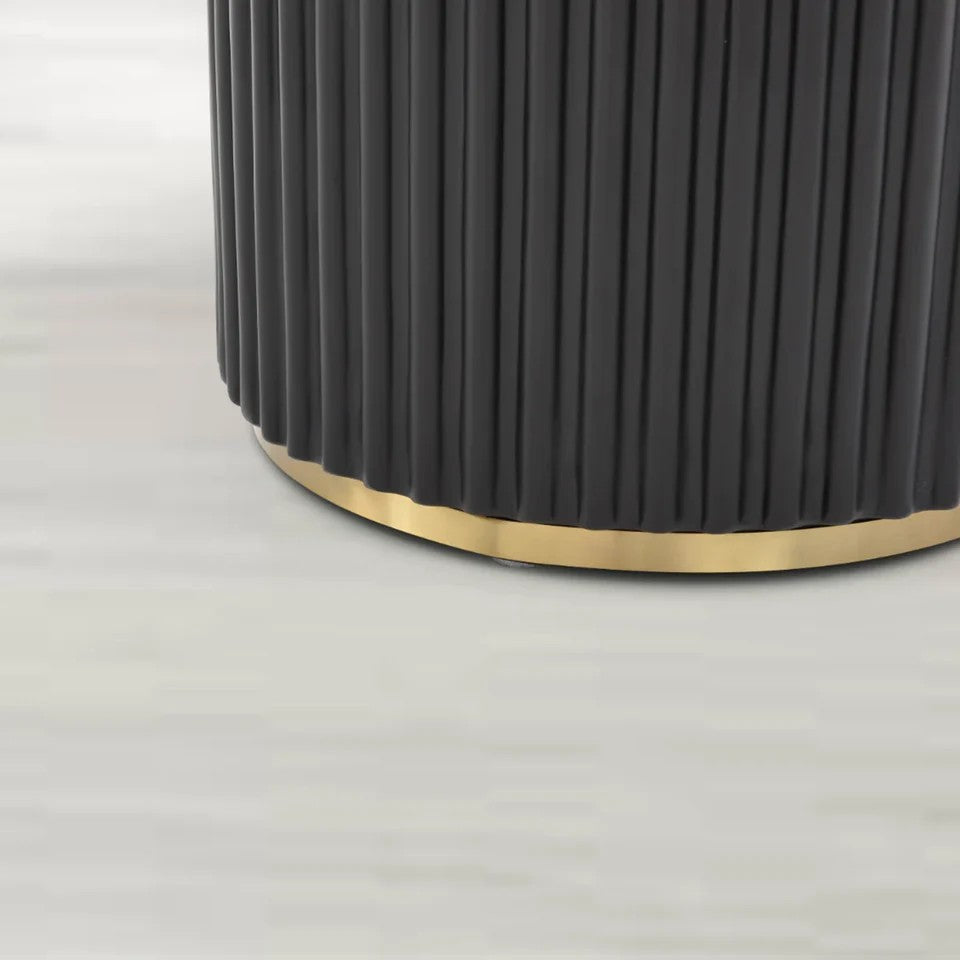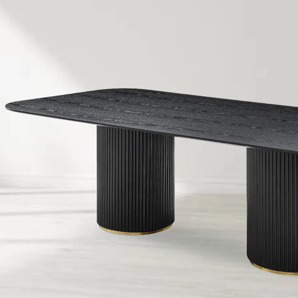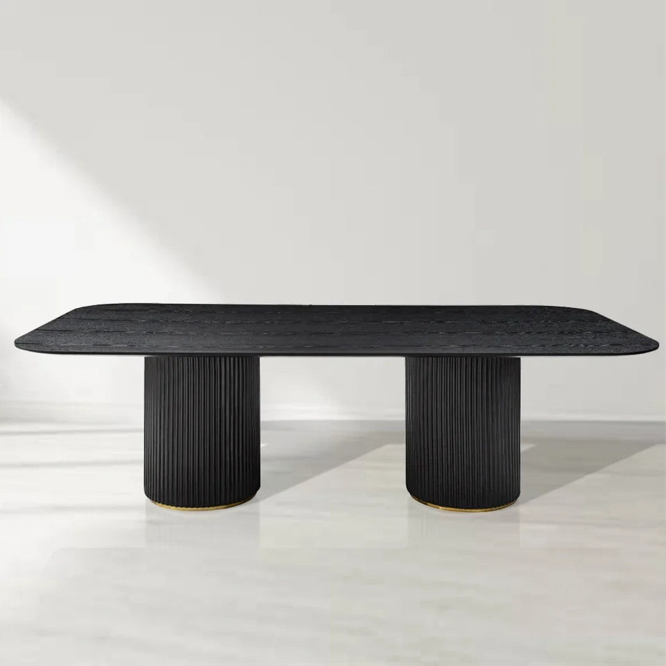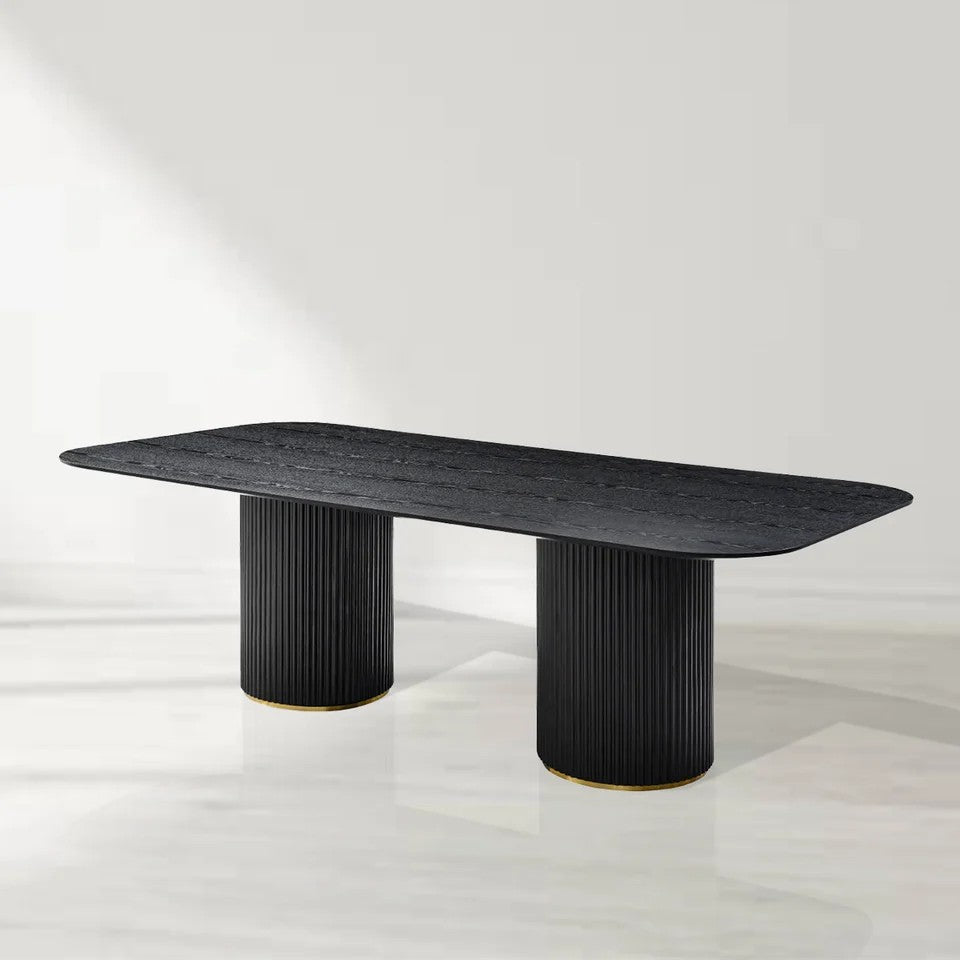 • Make a striking statement in your dining space with the Nantie 240 Dining Table, a perfect blend of refined elegance and modern sophistication. Featuring a luxurious walnut veneer top, this table is beautifully contrasted by a bold twin-pedestal base with brass-accented ribbed detailing, adding depth and texture to its design.