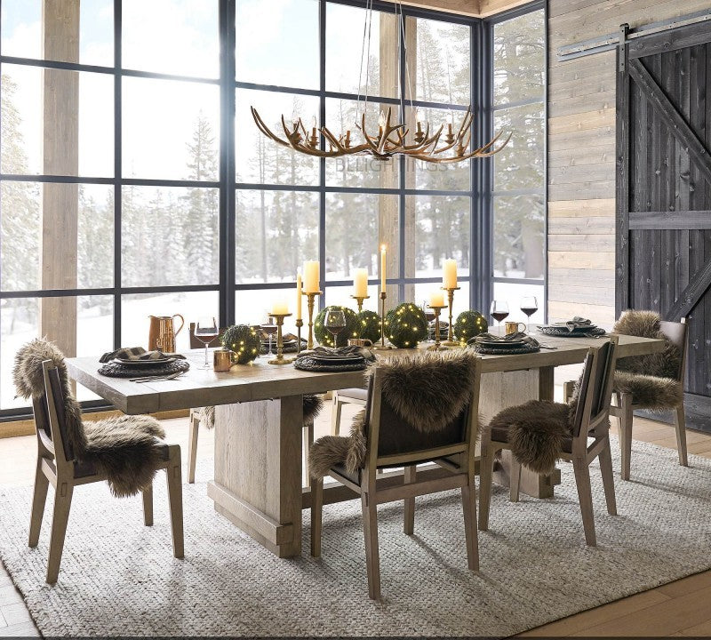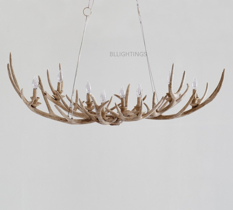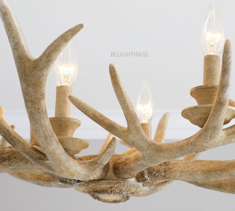 Handcrafted from naturally shed antlers, our rustic chandelier conveys the beauty of this natural form in a striking sculptural grouping. Candlestick lights impart a warm glow, casting dramatic shadows.