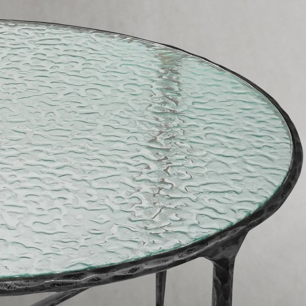Our hand forged metal with marble collection. Using an age-old production process, artisans hand-hammer metal strips to reveal vibrant, imperfect, organic textures. The hammered, tapered silhouette provides a rich contrast to the smooth, honed stone.- Tabletop crafted of 1"-thick marble over a wood core