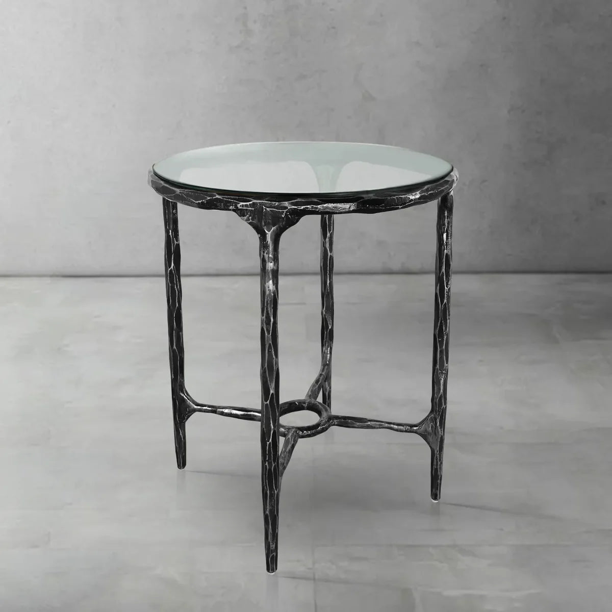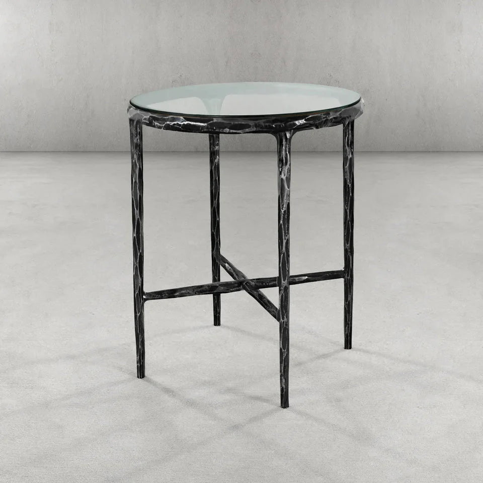 Our hand forged metal with marble collection. Using an age-old production process, artisans hand-hammer metal strips to reveal vibrant, imperfect, organic textures. The hammered, tapered silhouette provides a rich contrast to the smooth, honed stone.