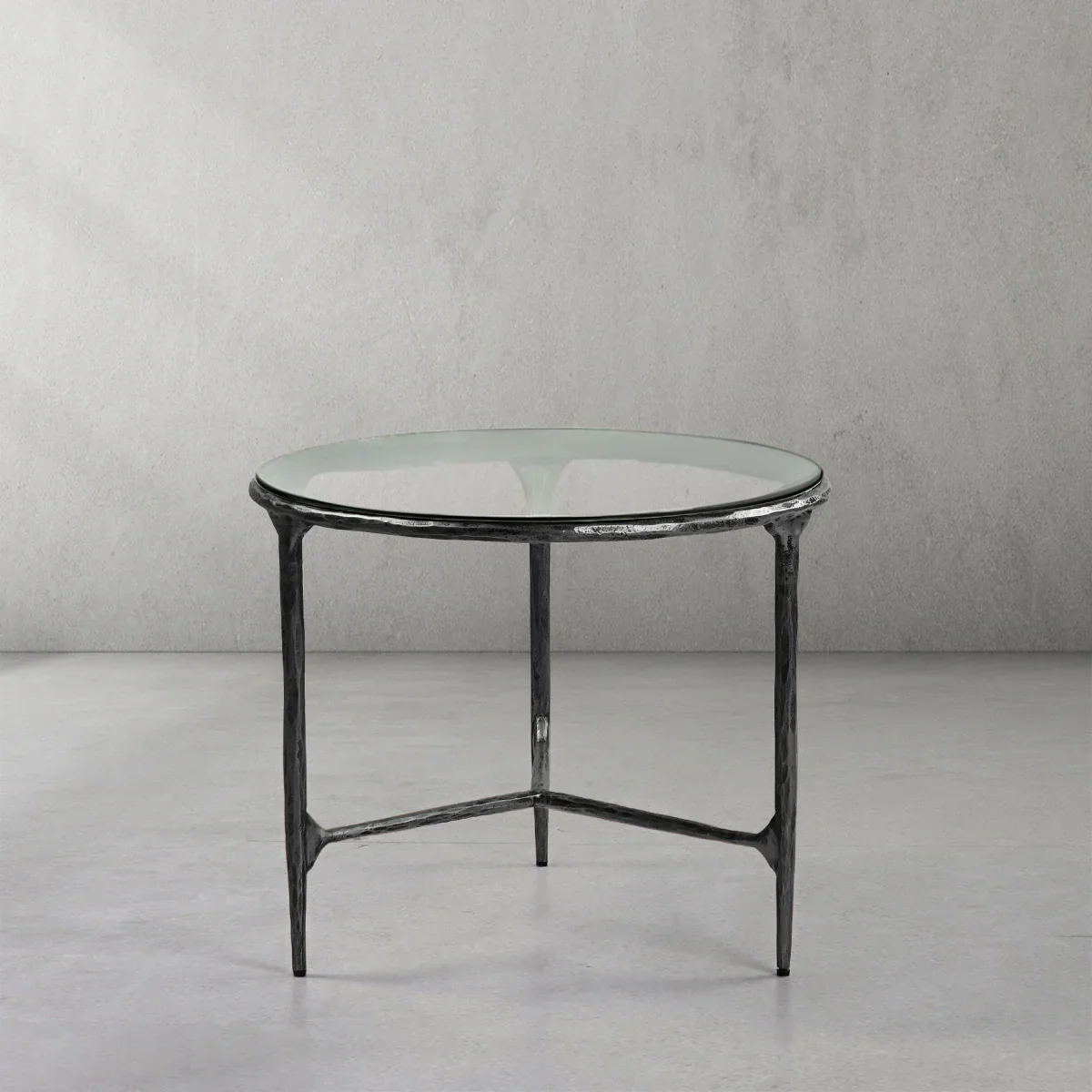 Our hand forged metal with marble collection. Using an age-old production process, artisans hand-hammer metal strips to reveal vibrant, imperfect, organic textures. The hammered, tapered silhouette provides a rich contrast to the smooth, honed stone.- Tabletop crafted of 1"-thick marble over a wood core