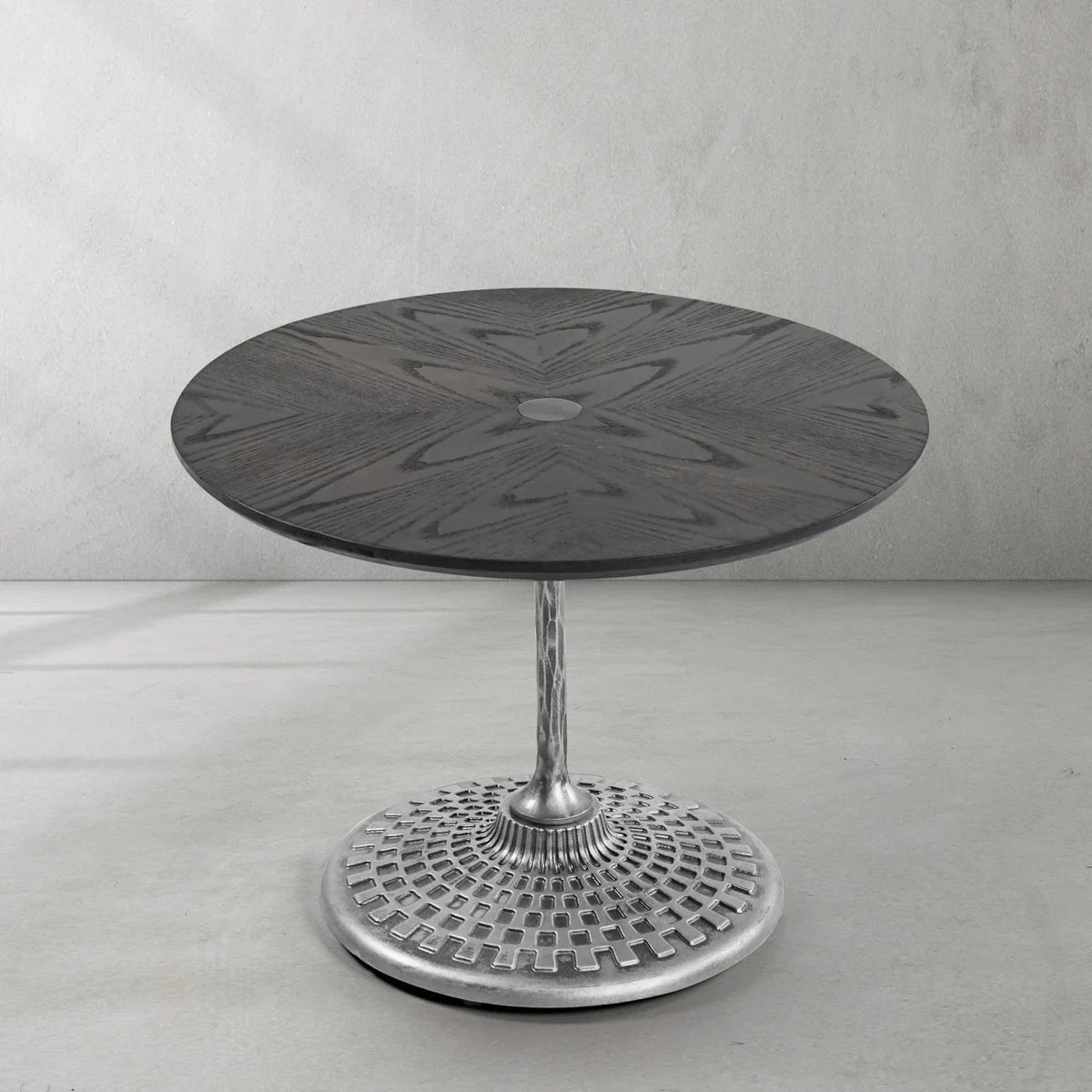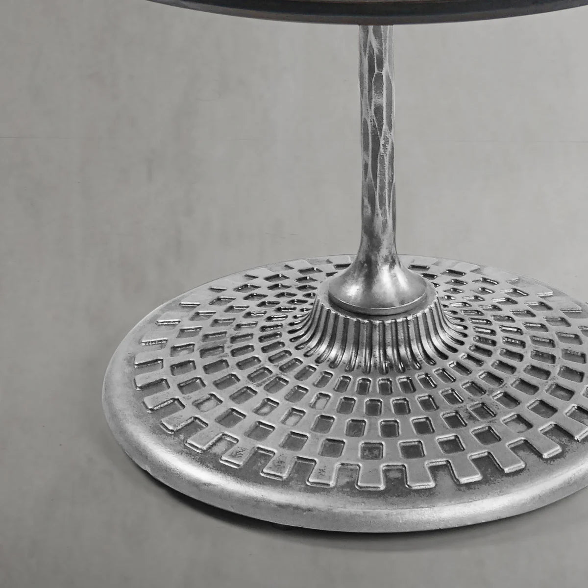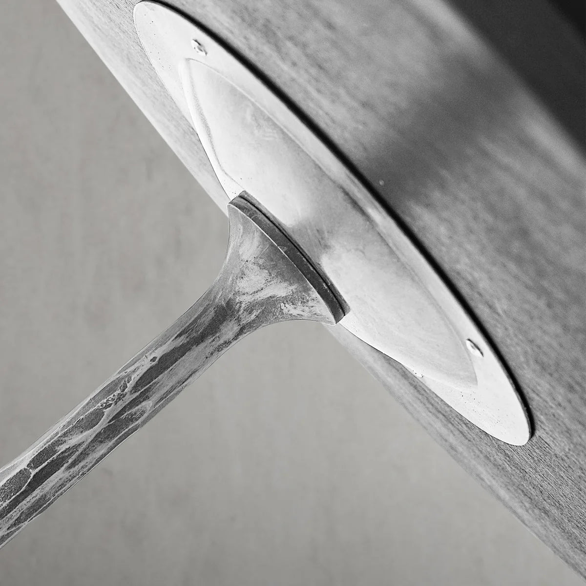 Our hand forged metal with marble collection. Using an age-old production process, artisans hand-hammer metal strips to reveal vibrant, imperfect, organic textures. The hammered, tapered silhouette provides a rich contrast to the smooth, honed stone.- Tabletop crafted of 1"-thick marble over a wood core