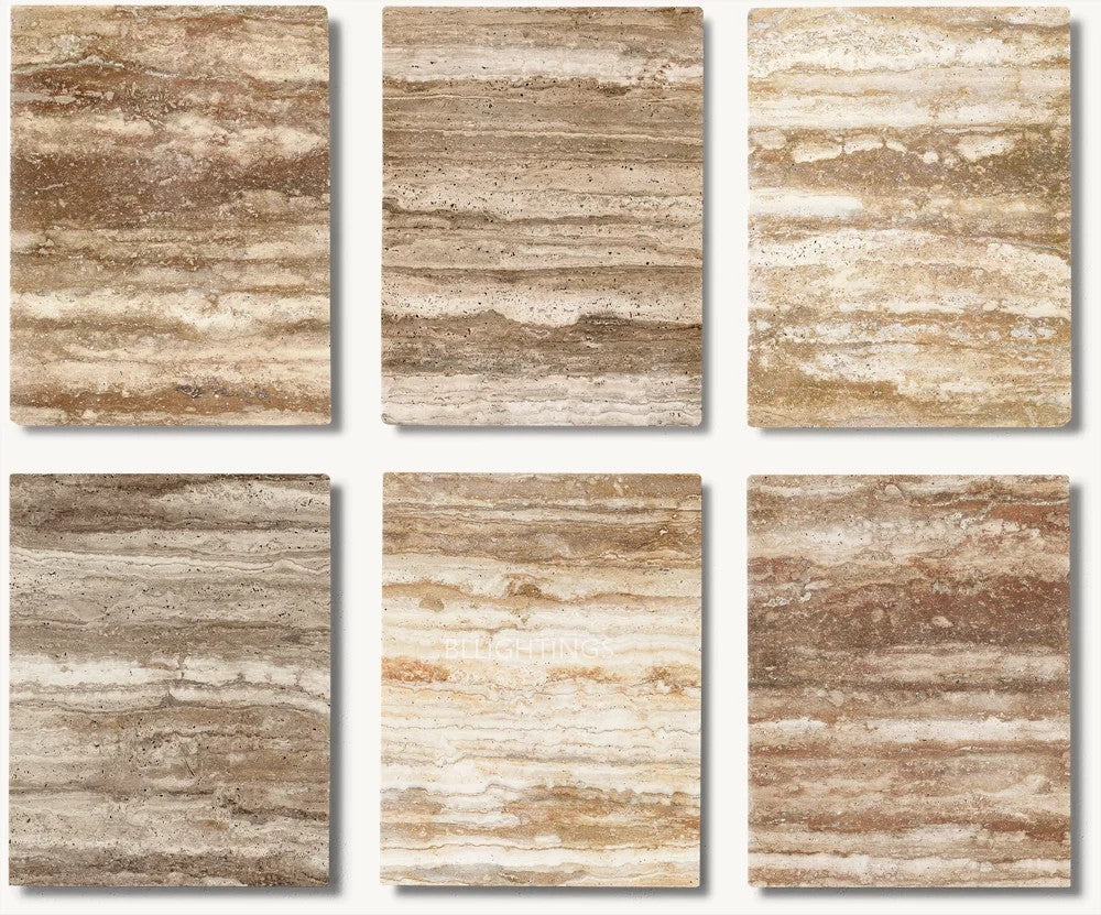 - Weight: 485 lbs. (Italian Classico Ombra Travertine, Italian Arabescato Marble), 422 lbs. (Italian Tiziano Travertine)